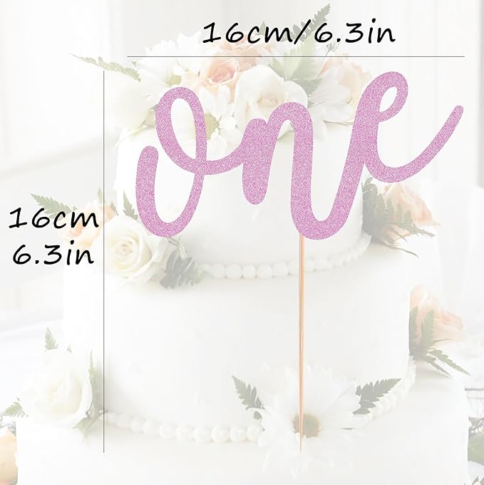 First Birthday Cake Topper - Pink Glitter One Cake Decorating Supplies for Girls and Boys, Perfect for Baby Shower/Gender Revealing Party/Baby Party Photo Booth Props