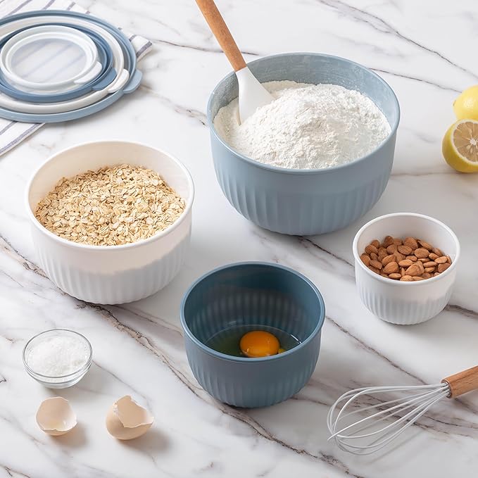 - Nesting Bowls and Sturdy Lids for Easy Stacking - Our chic ombre colored bowl set nests for easy storage and convenience, a functional set that saves you space. The strong lids allow for staking in the fridge and freezer, and the clear top allows for easy visibility.