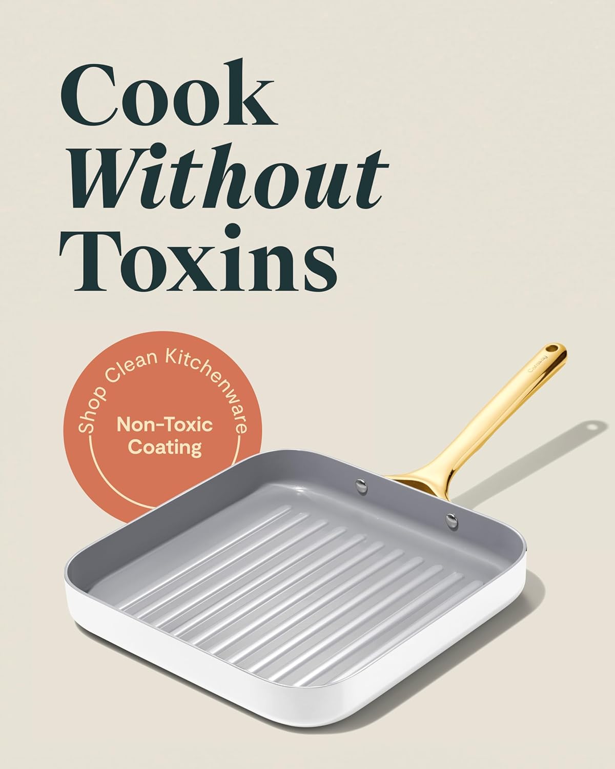 Caraway Square Grill Pan - 11” Grill Pan - Non-Stick Ceramic Coated - Non Toxic, PTFE & PFOA Free - Oven Safe & Compatible with All Stovetops - White