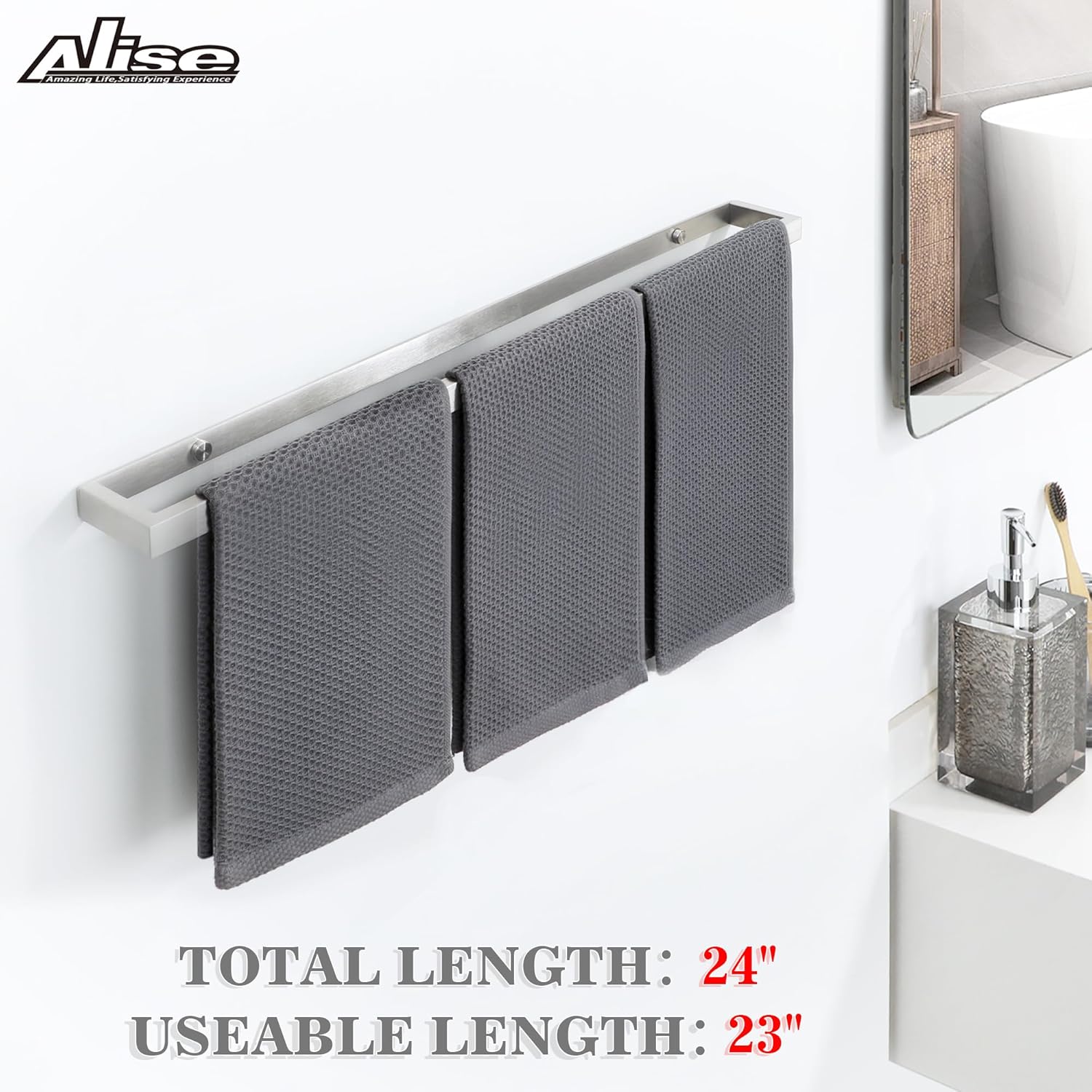Alise Bath Towel Bar,Wall Mount Towel Holder Towel Rack Towel Hanger for Bathroom Lavatory,24 Inch SUS304 Stainless Steel Towel Rail,Brushed Finish GJF060-LS