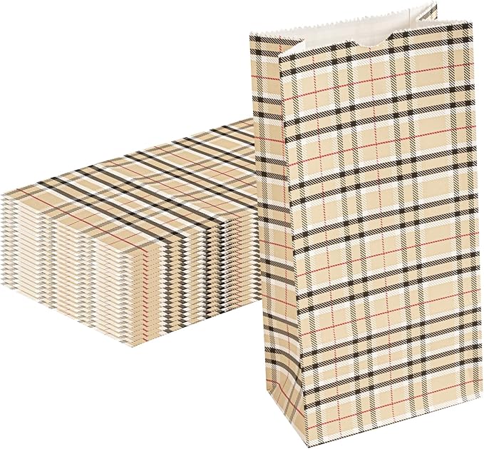 - STYLISH DESIGN: With a plaid print, these paper bags boast a classic look that blends into any environment. These are great for taking food or other objects to any occasion!