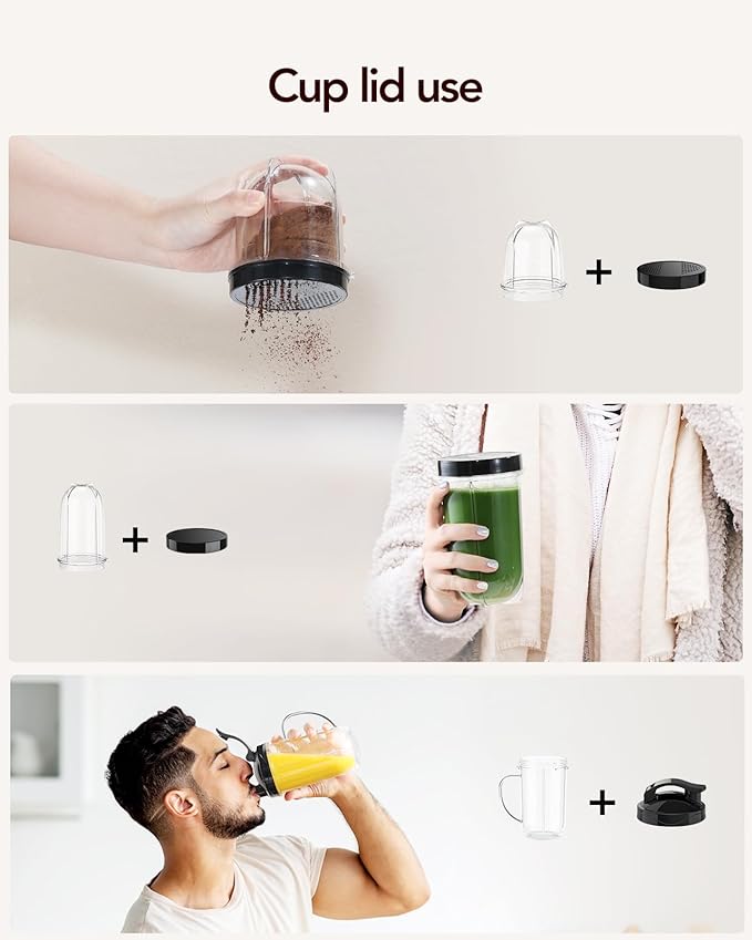 - [Larger Capacity, More Convenient] Enjoy the convenience of our personal blender's larger 40 OZ blending cup, eliminating the need for multiple batches. The dual-purpose sealable lid and sip-through lid of the blenders for kitchen provide options for secure storage or on-the-go enjoyment. Note: Please do not overload the operation of small power appliances