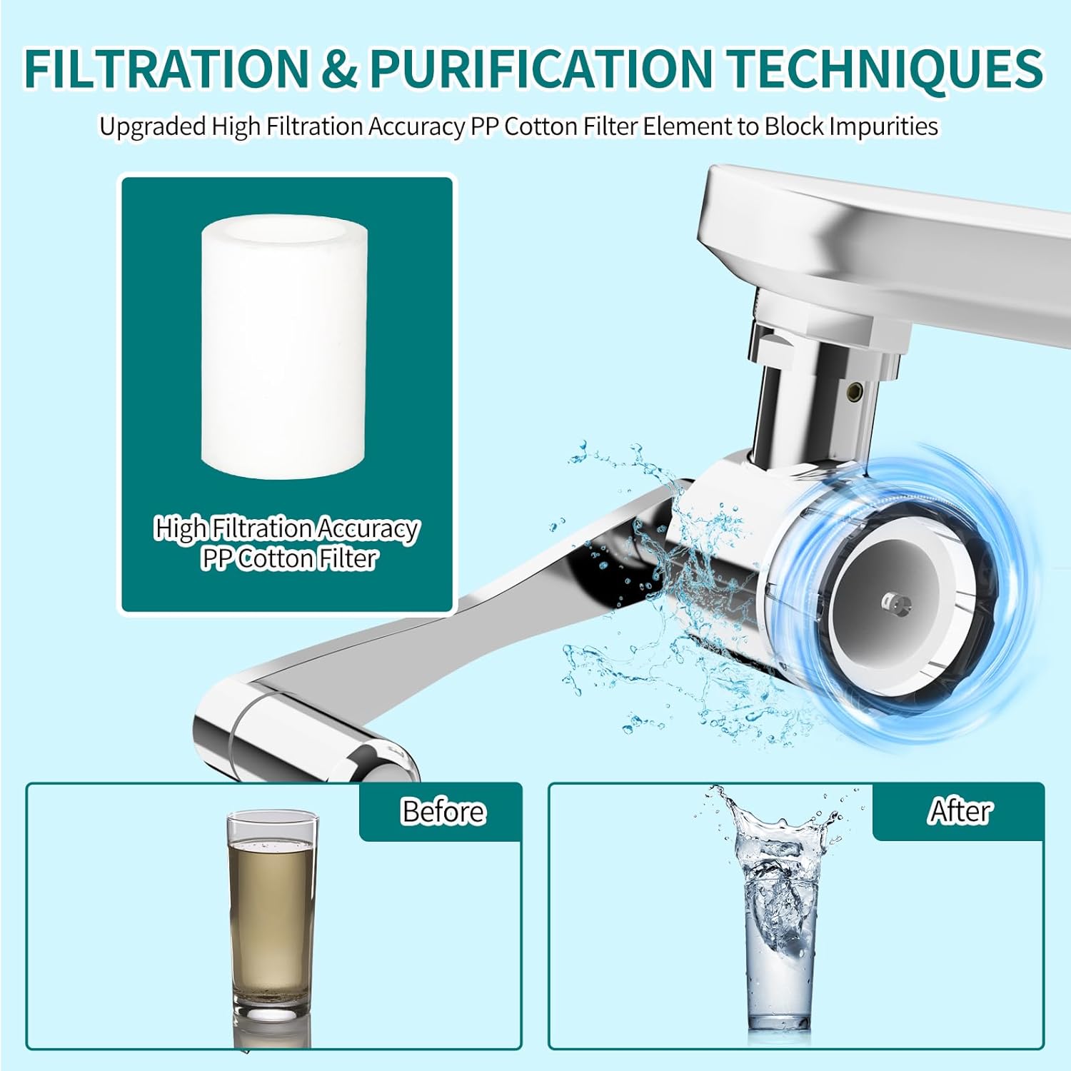 - Newly upgraded filtration: It comes with a newly upgraded PP cotton filter element, with high filtration accuracy, which can effectively block impurities in the water and keep your family healthy. The filter element is easy to be replaced and there are 8 additional PP cotton filter element included