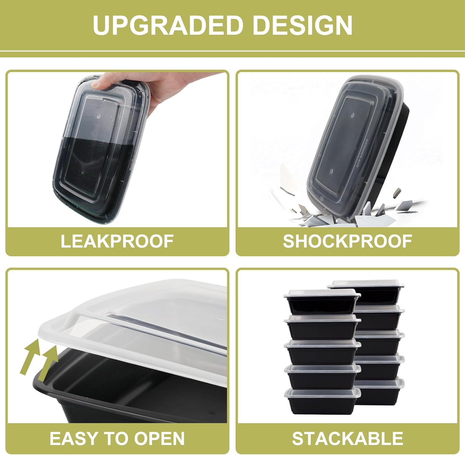 - 【Practicality and Convenience】These food containers with lids are perfectly sized for individual meals or portioned snacks. The 38 oz capacity is generous enough for most lunch or dinner portions, have truly streamlined meal planning and storage routine, and keep your food fresh and make meal prep a breeze.The leak-proof lids ensure that food stays secure during storage and transport, making them ideal for meal prepping, storing leftovers,or on-the-go meals.