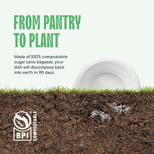 - 100% Sugarcane Fiber: The Twelve Ounce Bowls are Made of 100% Sugarcane Fiber, a Sustainable, Renewable, and Biodegradable Material. A great Alternative to Traditional Paper or Plastic, the Disposable Bowl Offers the same Sturdy Function and Easy Cleanup, Yet it’s Completely Tree- and Plastic-free.