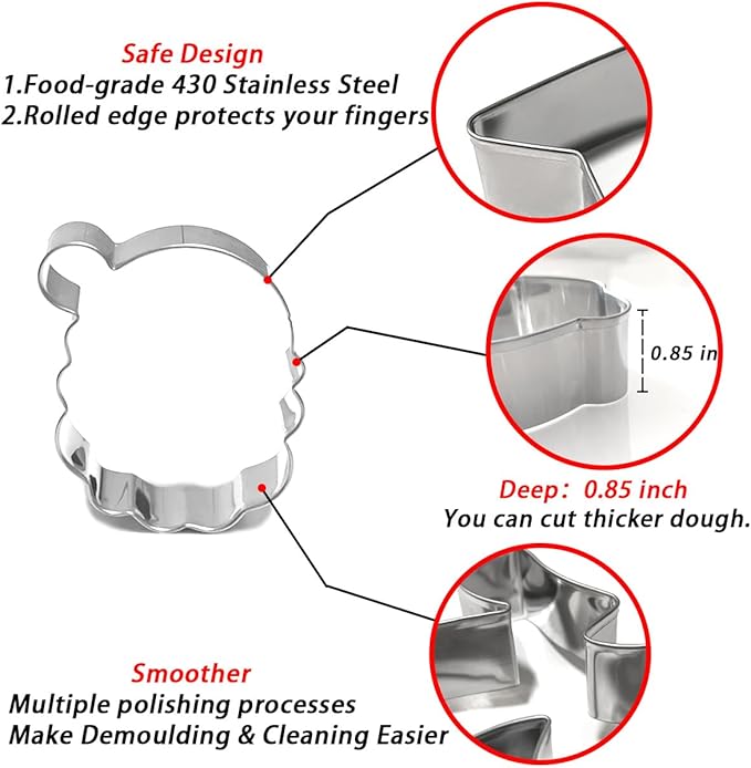 - 【High-quality Materials】- Our Christmas cookie cutters are made of Food-grade 430 Stainless Steel, the surface is polished, so it is smooth, durable and easy to clean.