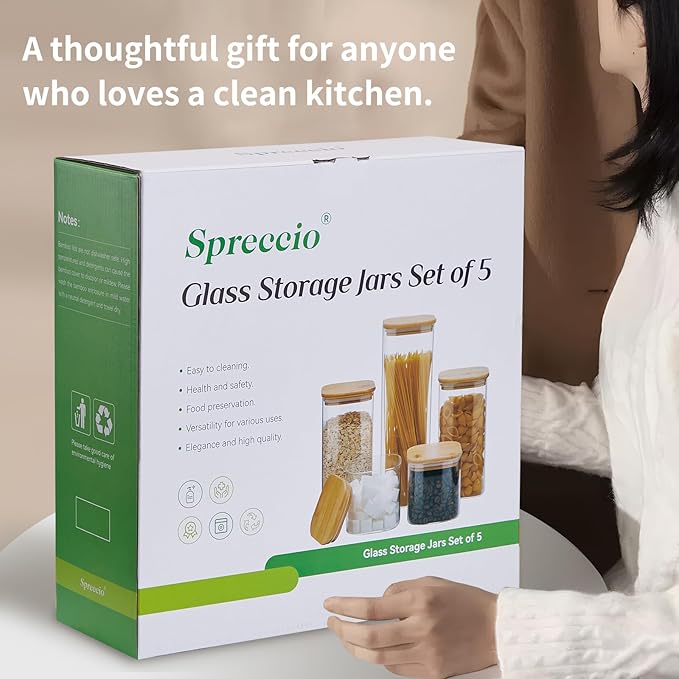 - 【Stylish and Functional Design】The combination of sleek glass and natural bamboo lids gives these jars a stylish and modern look. They not only serve as practical storage solutions but also add a touch of elegance to your kitchen or pantry.