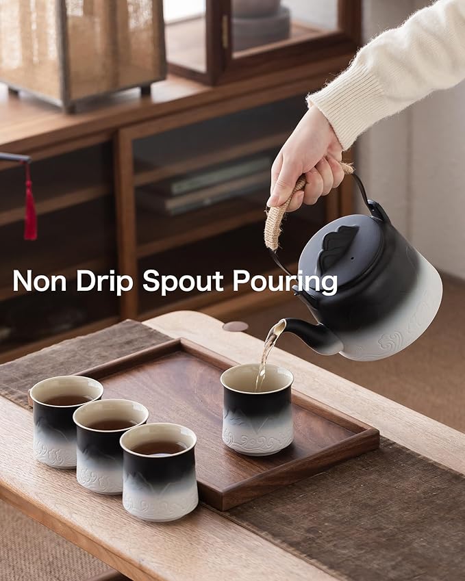 - MATTE VINTAGE JAPANESE TEAPOT SET: What a unique gradient color ceramic teapot set this is! The teapots are embossed with a mountain scene like a piece of art on the table. The matte glaze is hand-painted by artisans and contrasts with the glossy, smooth beige interior, creating a sense of stability and elegance.