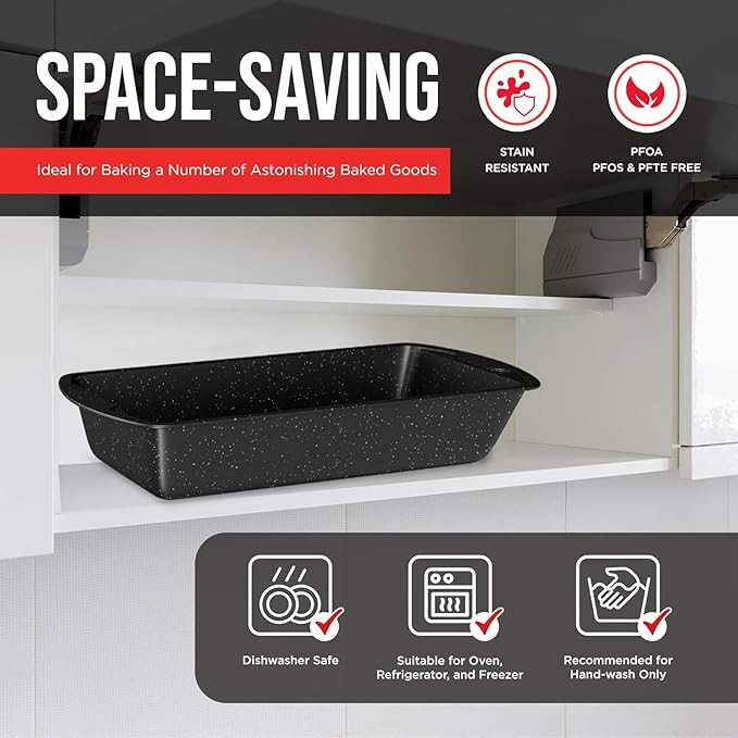 - SPACE-SAVING DESIGN - the stackable wide tray design of each of the 1 pans in our loaf pan set not only saves space in your kitchen but keeps your bakeware organized and ready for your next baking session. Make the most of your cabinet space and do away with pans that clutter your kitchen