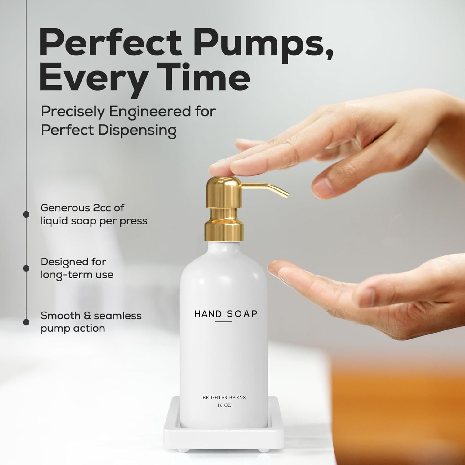 - AMERICAN DESIGN, UNCOMPROMISING QUALITY - Crafted with meticulous attention to detail, our aesthetic glass soap dispenser with pump set features 2 robust 16oz glass bottles, corrosion-proof 304G stainless steel pumps, and a stain-resistant ceramic tray. All designed in the USA to provide unbeatable quality and enduring style that you can trust.