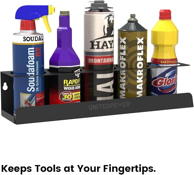 UNITEDPOWER 5 Aerosol Spray Can Holder, Paint Bottle Storage Rack, Steel Wall Mount Shelf, Tool Organizer for Garage, Craft Workspace and Home