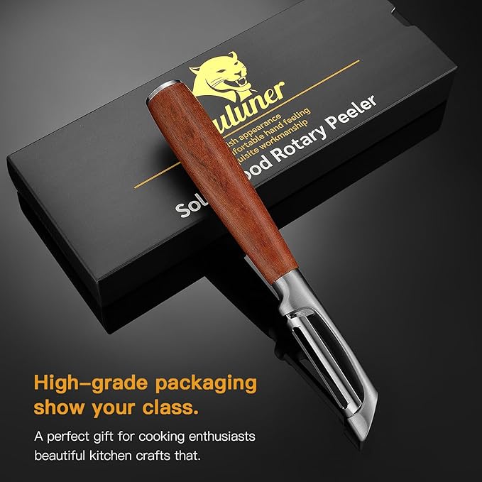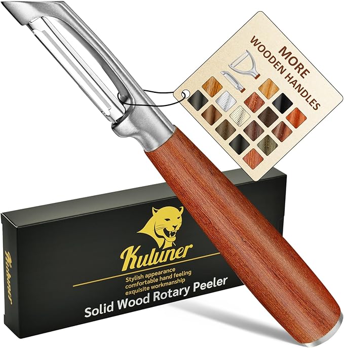 KU LUNER Premium 304 Stainless Steel Multifunctional Kitchen Fruit and Vegetable Peeler with Real Wood Handle,Ultra Sharp Strong Blade