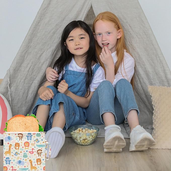 - ✿【Kid-Friendly & Leakproof 】SBS Zipper make this school lunch bag super easy to use for your ages 3+ kids, and it is also very convenient to carry on the go by loop handle. These resuable bags are leakproof while keeping washed fruits, but not completely airtight due to zippered closure, if you pack chips, crackers, pretzels and dried foods, please finish eating within 24 hours to enjoy freshness.