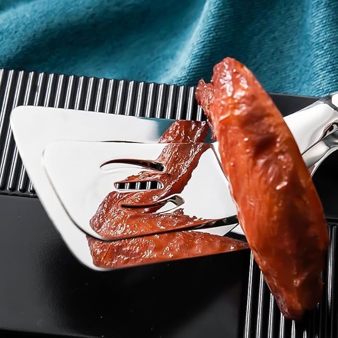 - 【Multifunctional】Tongs for cooking,Our clips are good at turning and transferring whole steaks, meats, fish,burgers, eggs, hot dogs,breads,pancakes,bacon,pizza,desserts,like Mexican pancake,Brazilian barbecue,Italian steak.