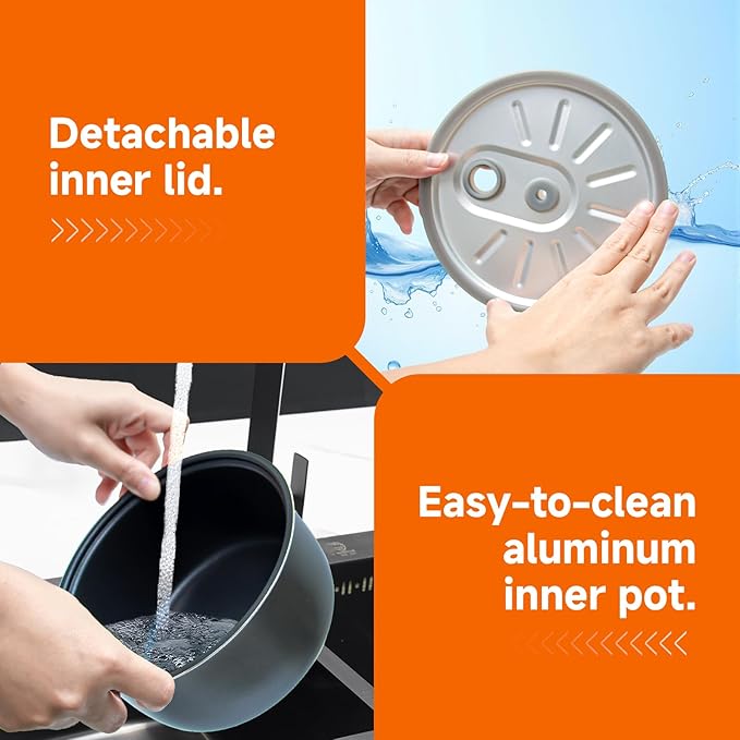 - 【FIVE-LAYER THICKENED ALUMINUM PAN】The inner liner of the rice cooker is made of high quality alloy aluminum. Anti-corrosion and anti-rust, the inner wall is coated with a safe and environmentally friendly non-stick coating, making it easier to clean without leaving any residue. Compared with the stainless steel inner liner that can be found everywhere in the market, this rice cooker thickened aluminum pot is more suitable to appear in your kitchen.