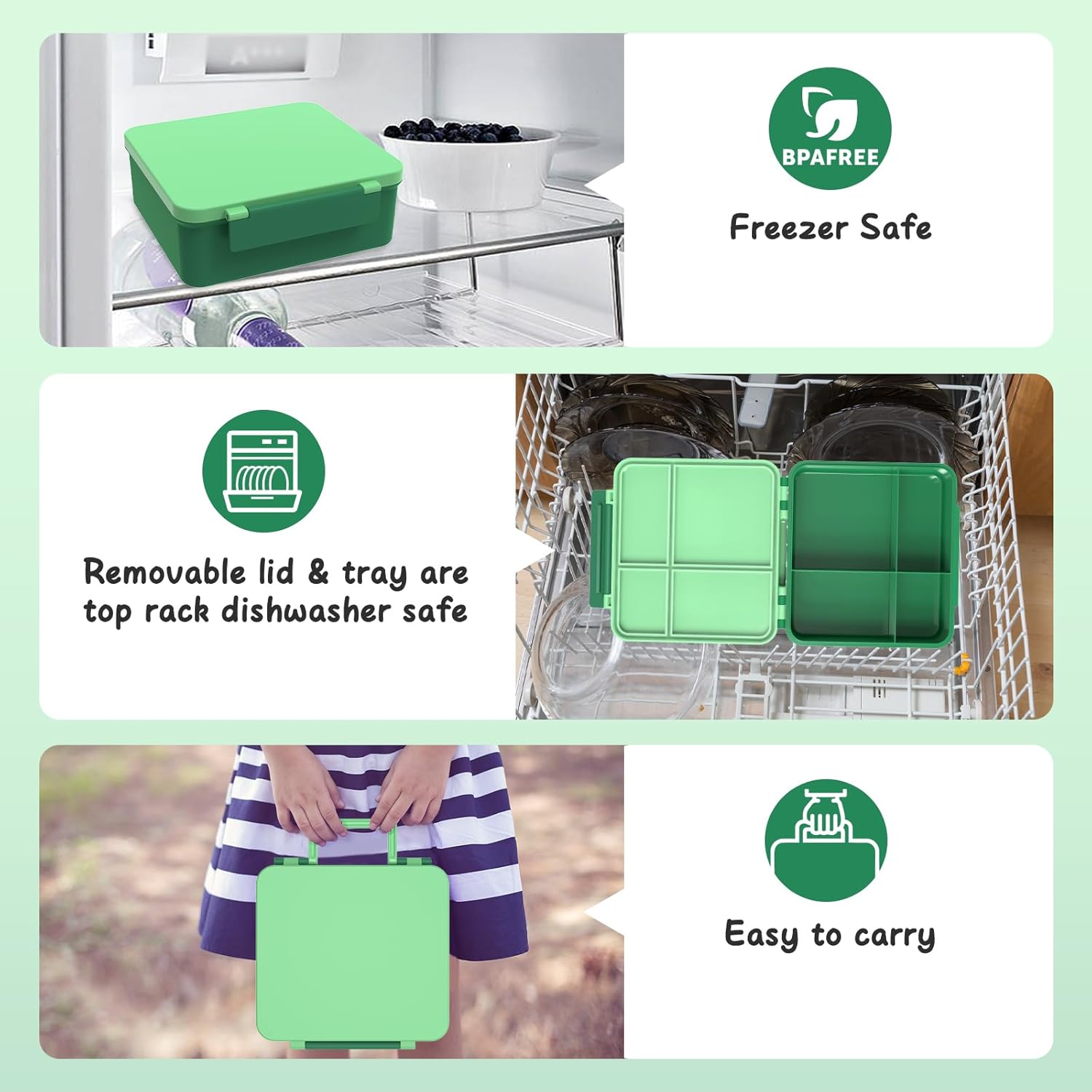 - Perfect Lunch Box for Healthier Meals: Our bento box is crafted from premium food-grade material that is odorless, BPA-free, non-toxic, stain-resistant. It features four versatile compartments, portioned perfectly for a child's appetite.
