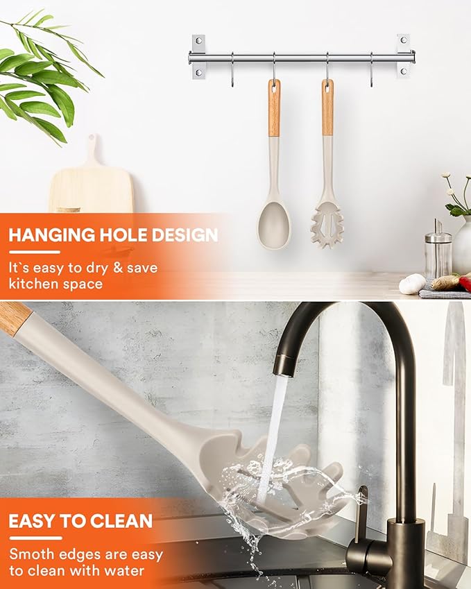 - The Most Thoughtful Design: The high-quality Nylon Core is more durable and keeps you away from the trouble of kitchen utensils rusting or breaking. The anti-scald Wooden handle is not easy to conduct heat and is more comfortable to hold than traditional utensils