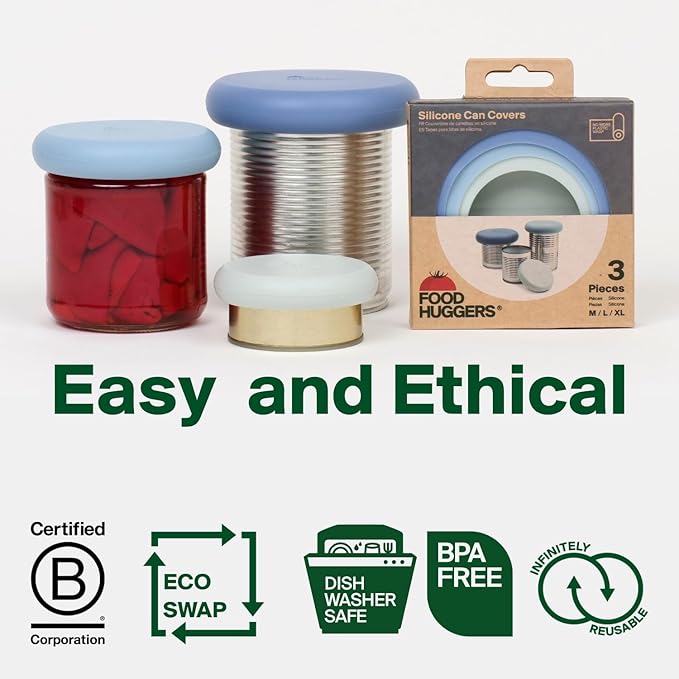 Food Huggers 3 Can Covers | Reusable Can Lids Snugly Seal Cans and Jars | 100% Food Grade Durable Silicone | Plastic Free (Blue)