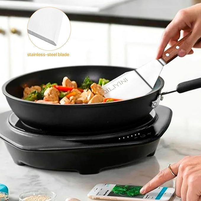 - QILIYINI’S SIGNATURE SPATULA – Protect your cookware with our professional grade stainless steel spatula. Perfect for cast iron griddles, BBQs, and flat top grills