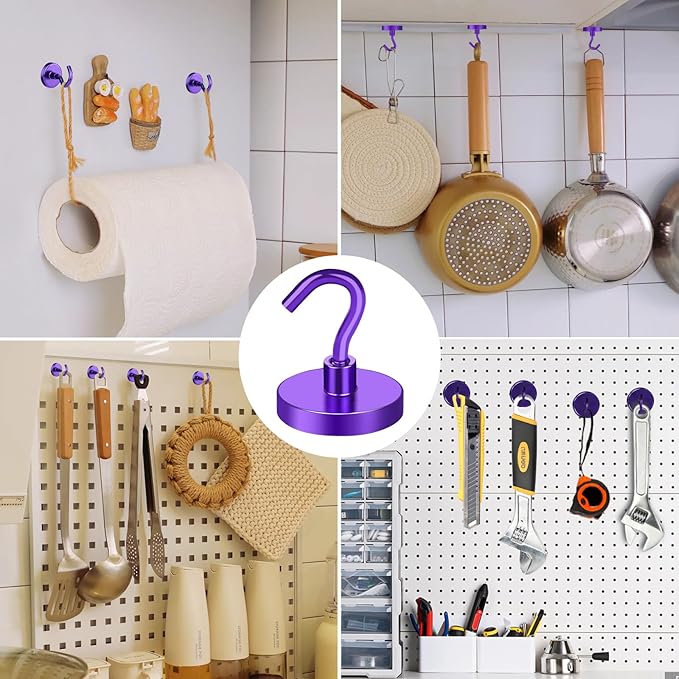 - 【Space Saving】- These magnetic refrigerator hooks are small and don't take up too much space, stable without drilling, so you can quickly and easily organize your home or office and make them more spacious and tidy. Feel free to create your unique house