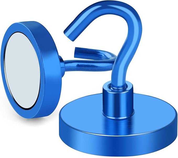 MIKEDE Strong Magnetic Hooks, 110Lbs Heavy Duty Magnetic Hooks for Cruise, Neodymium Earth Magnets with Hooks for Hanging, Super Metal Industrial Magnets for Grill, Storage (Blue,10 Pack)
