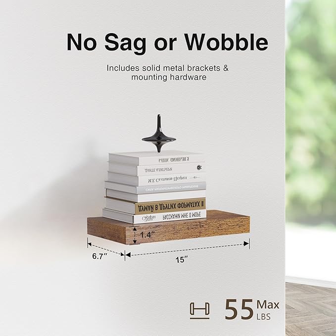- VERSATILE AND STYLISH DESIGN: Elevate your space with our wall shelves available in wood, black, and white. These floating shelves come in three sizes (15 inches, 24 inches, and 36 inches) and feature a natural wood texture that blends seamlessly with any decor style.