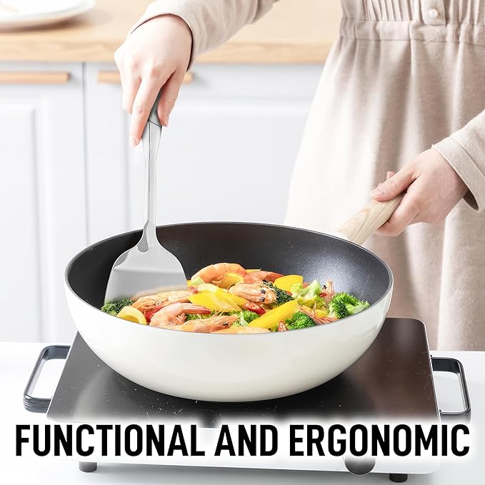 - DURABLE SOLID DESIGN TURNER: The perfect solid turner that deserves a spot next to your stove as you will reach for it constantly! Made from premium quality stainless steel with a good even edge that flawlessly slides under all types of food such as pancakes, eggs, meat, etc. Ergonomic handle is designed for a comfortable grip when holding.