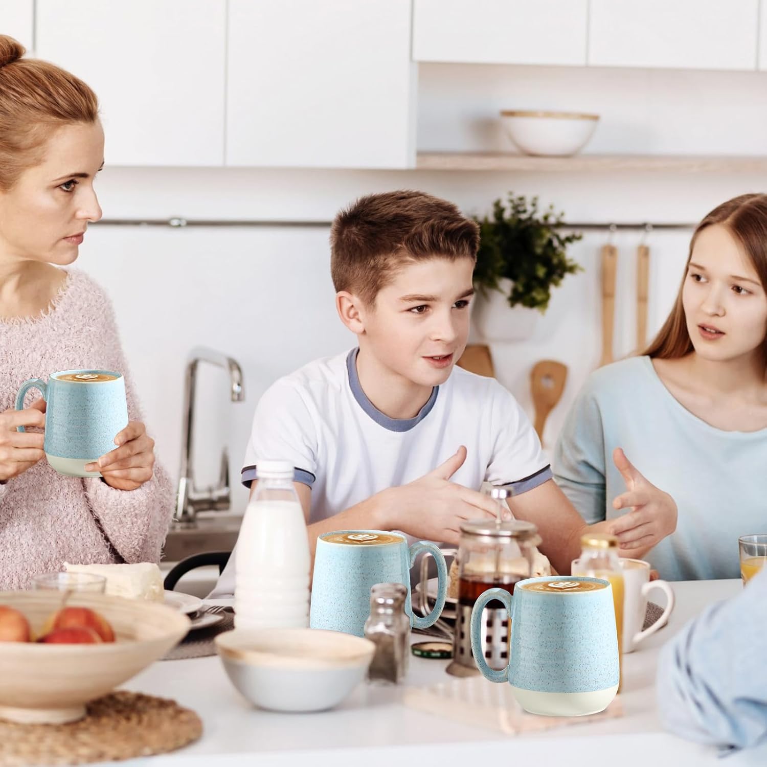 - TRANQUIL BLUE ELEGANCE: These stoneware mugs add calming elegance to any setting. Their tranquil hue evokes a sense of peaceful relaxation, elevating the ambiance of your space whether it's a quiet morning or a lively evening gathering