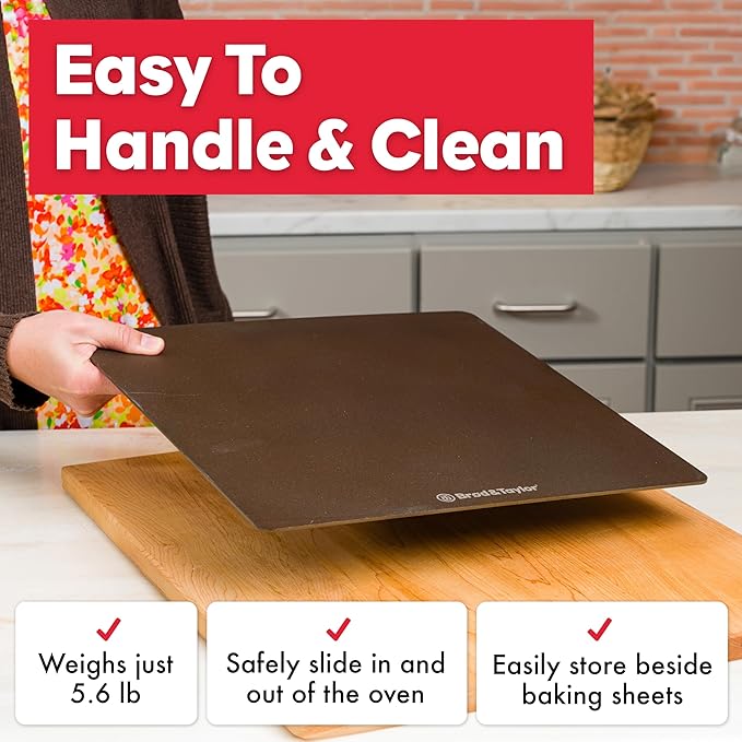 - EASY TO HANDLE & CLEAN β Unlike 1/4" steels weighing 15-20 pounds, this Bread Steel weighs just 5.6 lb (Original) or 8.6 lb (Max). It is lightweight and slim for easy handling and storage. Slide it in and out of the oven safely. Easily stores beside baking sheets.