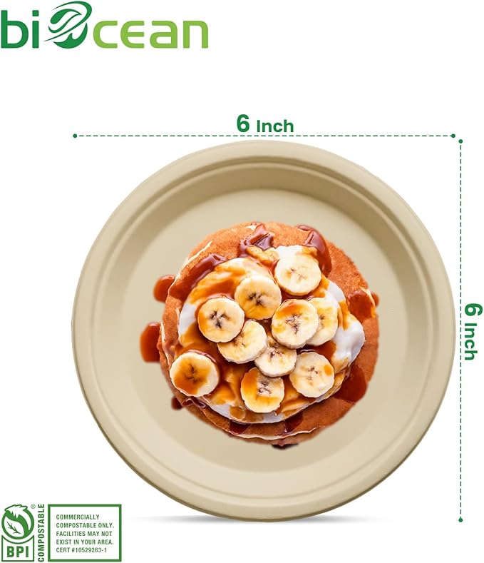 - Sustainable Symphony - Elevate your eco-conscious dining with our 6-inch 100-pack compostable plates, a harmony of recycled bagasse and bamboo. More than plates, they're a commitment to preserving trees, transforming sugar cane leftovers into robust symbols of natural responsibility