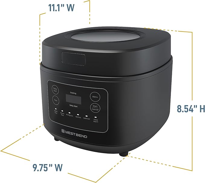 West Bend Programmable Rice & Grain Cooker with 7 Preset Functions, Includes Delay Start and Keep Warm, Features Easy View Window & Steam Basket, 12 Cups Cooked (6 Uncooked), Black