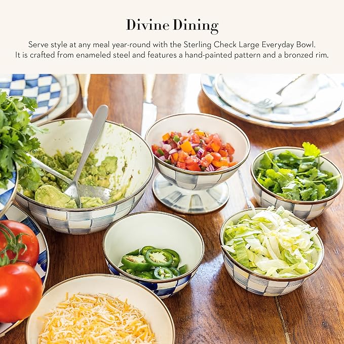 MACKENZIE-CHILDS Enamel Everyday Bowl, Serving Bowl for Entertaining, Large, Gray-and-White Sterling Check, Set of 1