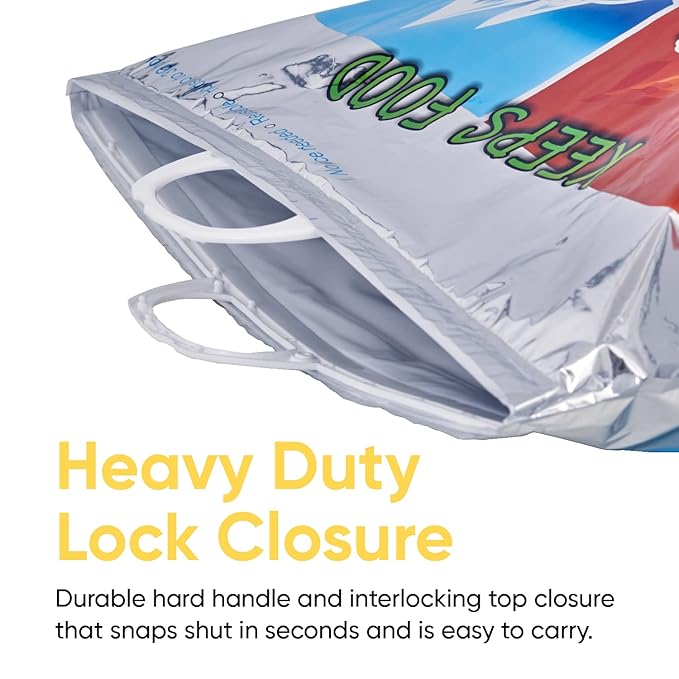 - ✅ HEAVY DUTY LOCK CLOSURE - Every size bag has a durable hard handle and interlocking hard top closure that snaps shut in seconds and is easy to carry. The durable closing mechanism keeps your food fresh and insulated from outside temperatures (hot or cold) and humidity for hours at a time.