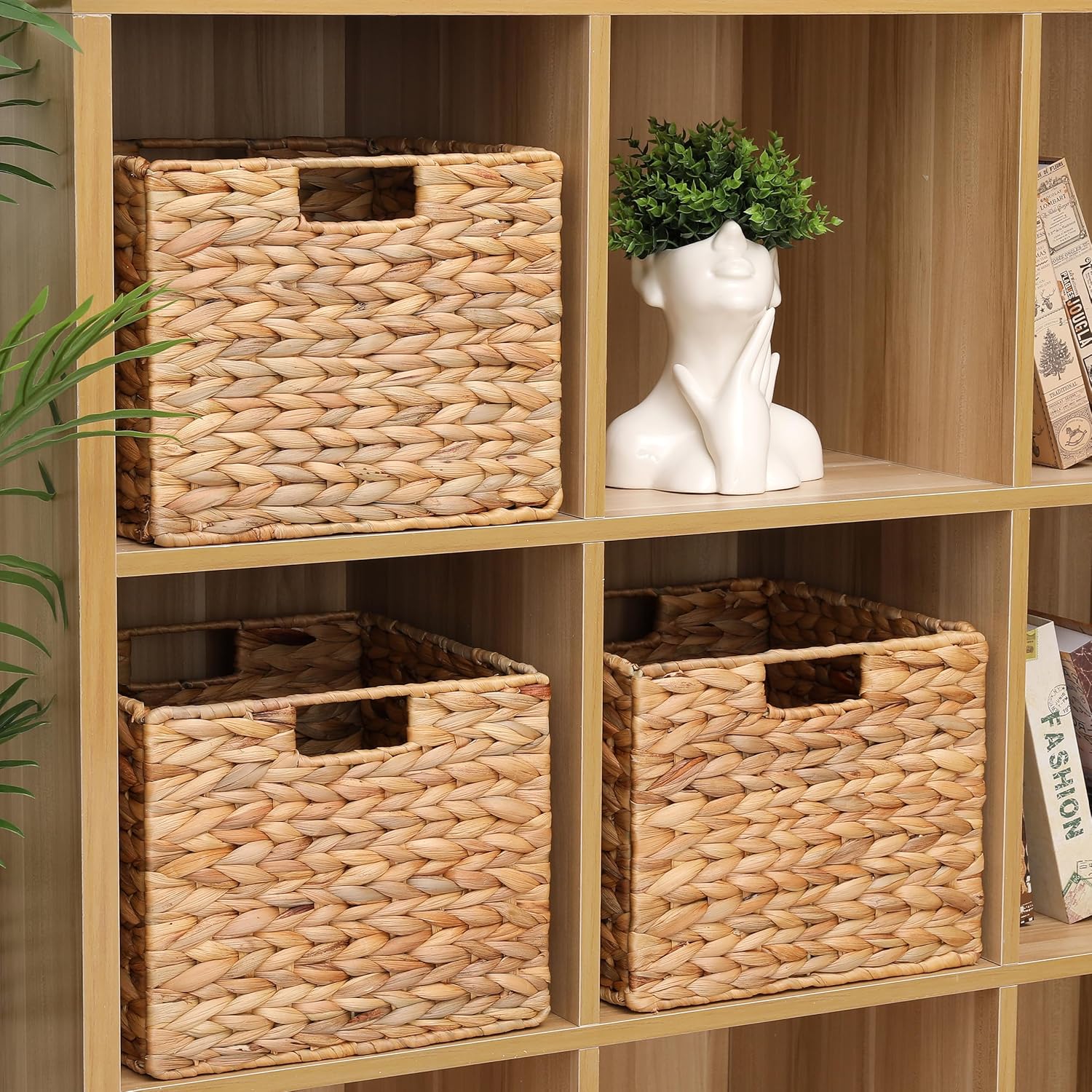 12x12x10 Water Hyacinth Folding Cube Wicker Storage Basket for Shelves, Pantry, Kitchen Organization and Storage