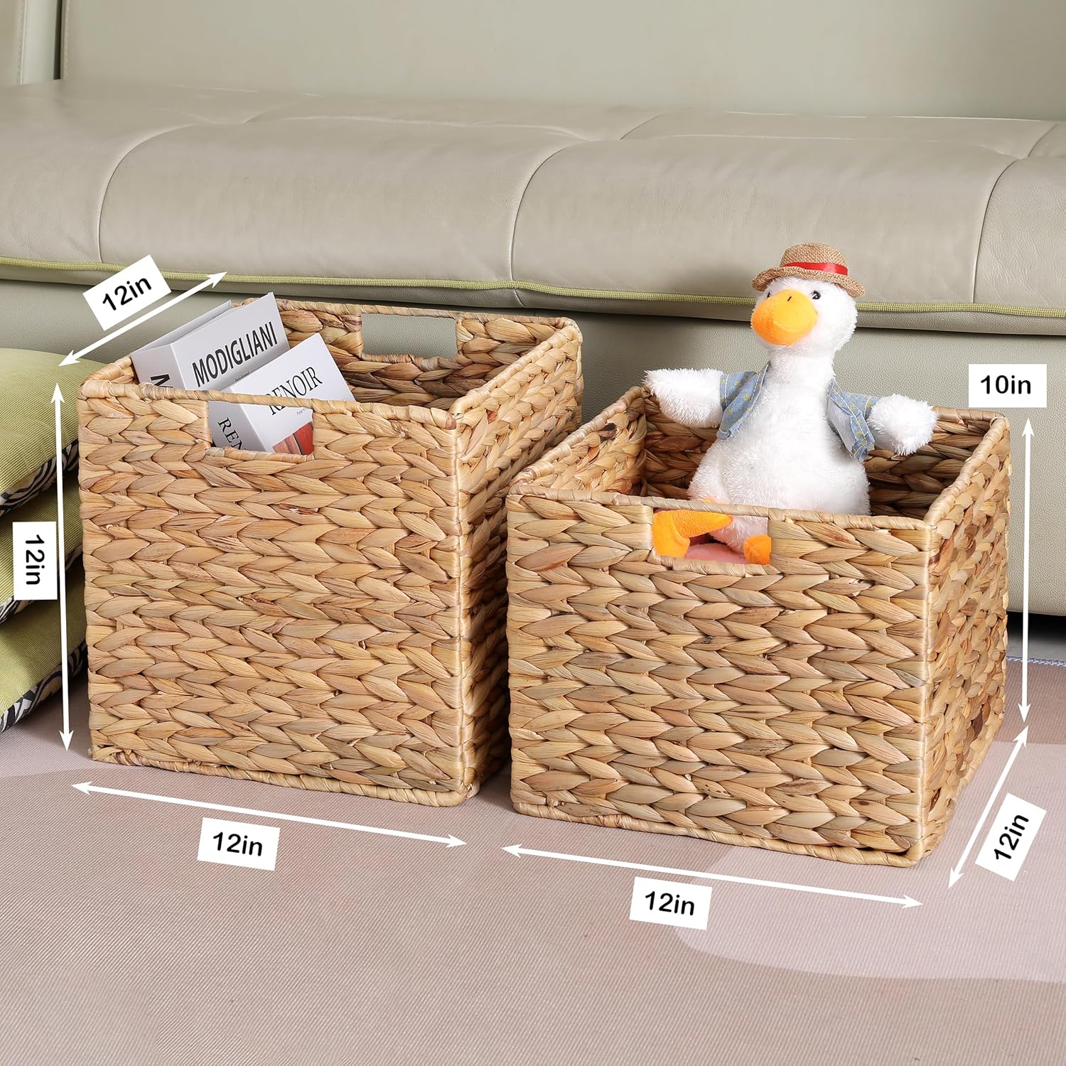 - Attention:12x12 cube storage baskets made of 100% natural material are easy to clean, dusting the basket with a soft dry cloth is recommended. Do not rinse directly with water or soak in water.
