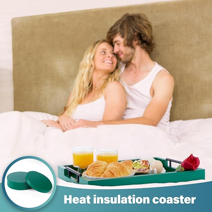 - INCLUDED WOODEN COASTERS SET OF 4 β Along with our wooden serving trays, we also provide a set of 4 natural wooden coasters that have a tasteful torched appearance. These wooden coasters for drinks are the best way to protect your tables from spills, mess, and stains while also adding a decorative element to your home, uplifting the overall aesthetic appeal β MUST HAVE ottoman tray with handles can be used as a Drink Tray!