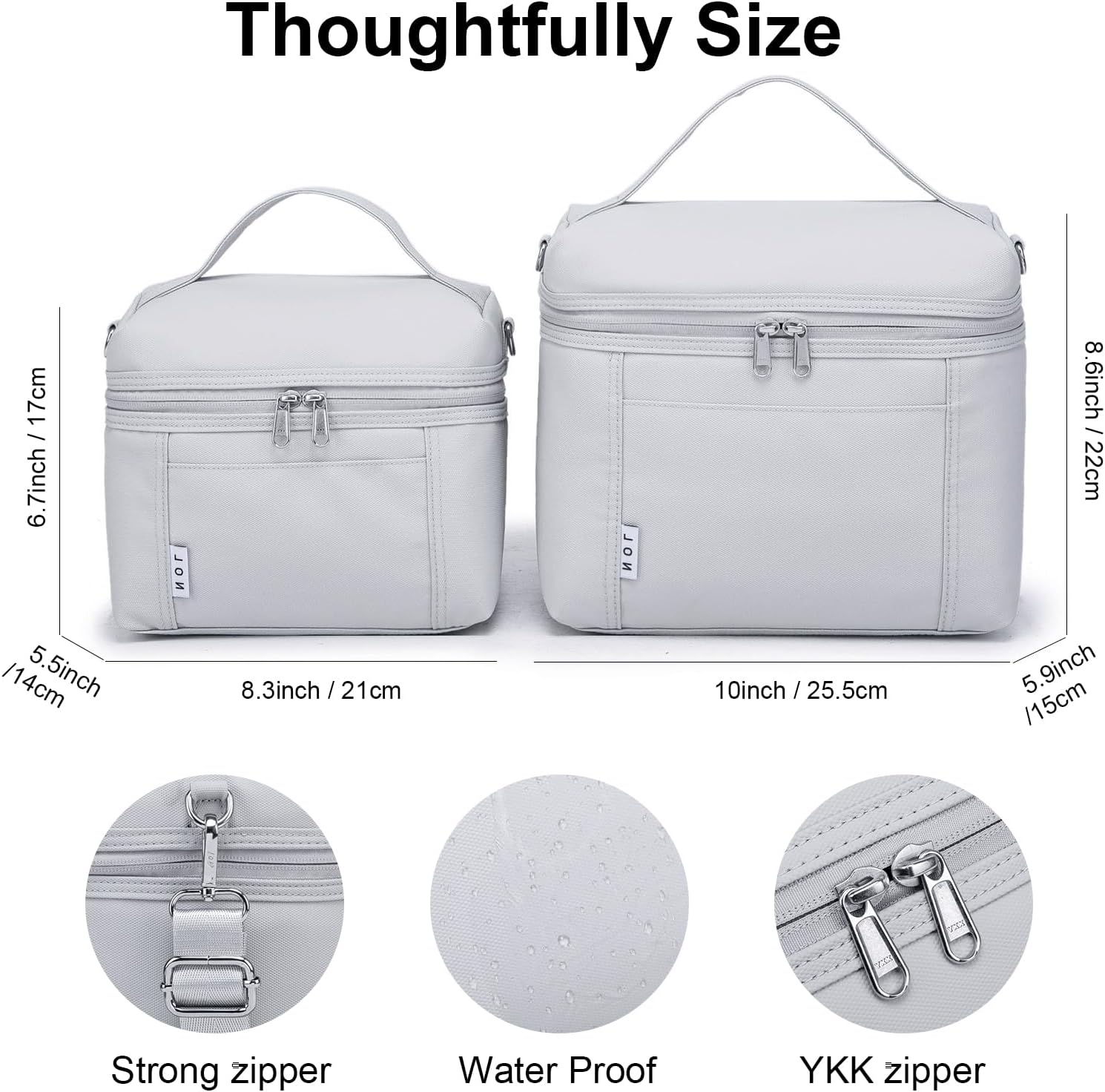 NOL Natural Organic Lifestyle Insulated Lunch Bags for Women Cooler Bag Lightweight Nylon Waterproof Lunch Box For Work (Gray White, Medium(normal))