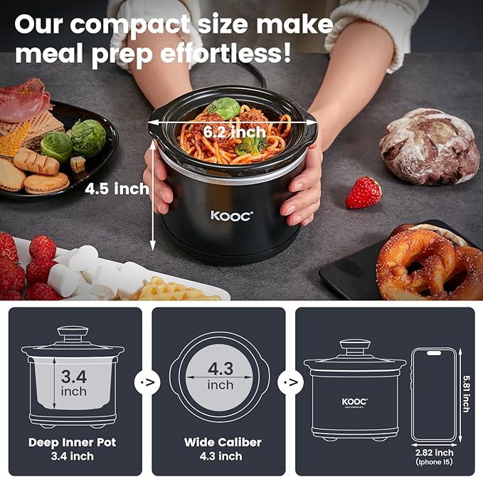 - [EXPANDABLE COLLECTION] KOOC slow cookers come in a wide range of sizes and colors to suit different cooking needs. From compact 0.65 Quart models perfect for singles or couples, to larger 8.5 Quart options ideal for families or entertaining guests, there's a slow cooker for everyone