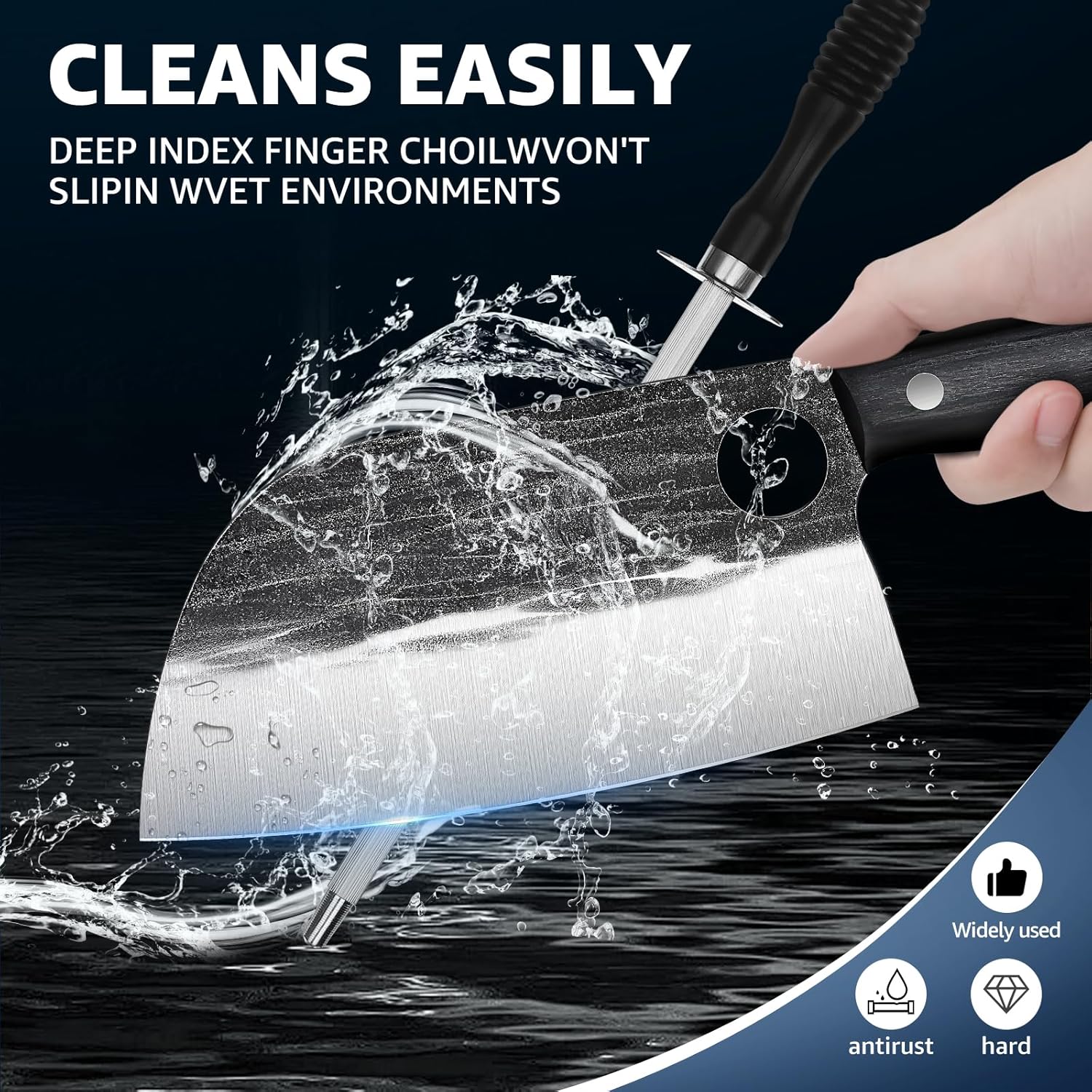 - 【High Carbon Steel knife set】: The Butcher Knife Set for kitchen is made from premium high-carbon steel. Crafted by skilled artisans with rich forging experience and utilizing modern CNC technology, every detail of high-temperature forging and quenching is meticulously controlled, this ensures that each knife in our set achieves a Rockwell hardness of 59. This forged blade knife set will be your most reliable companion in the kitchen.