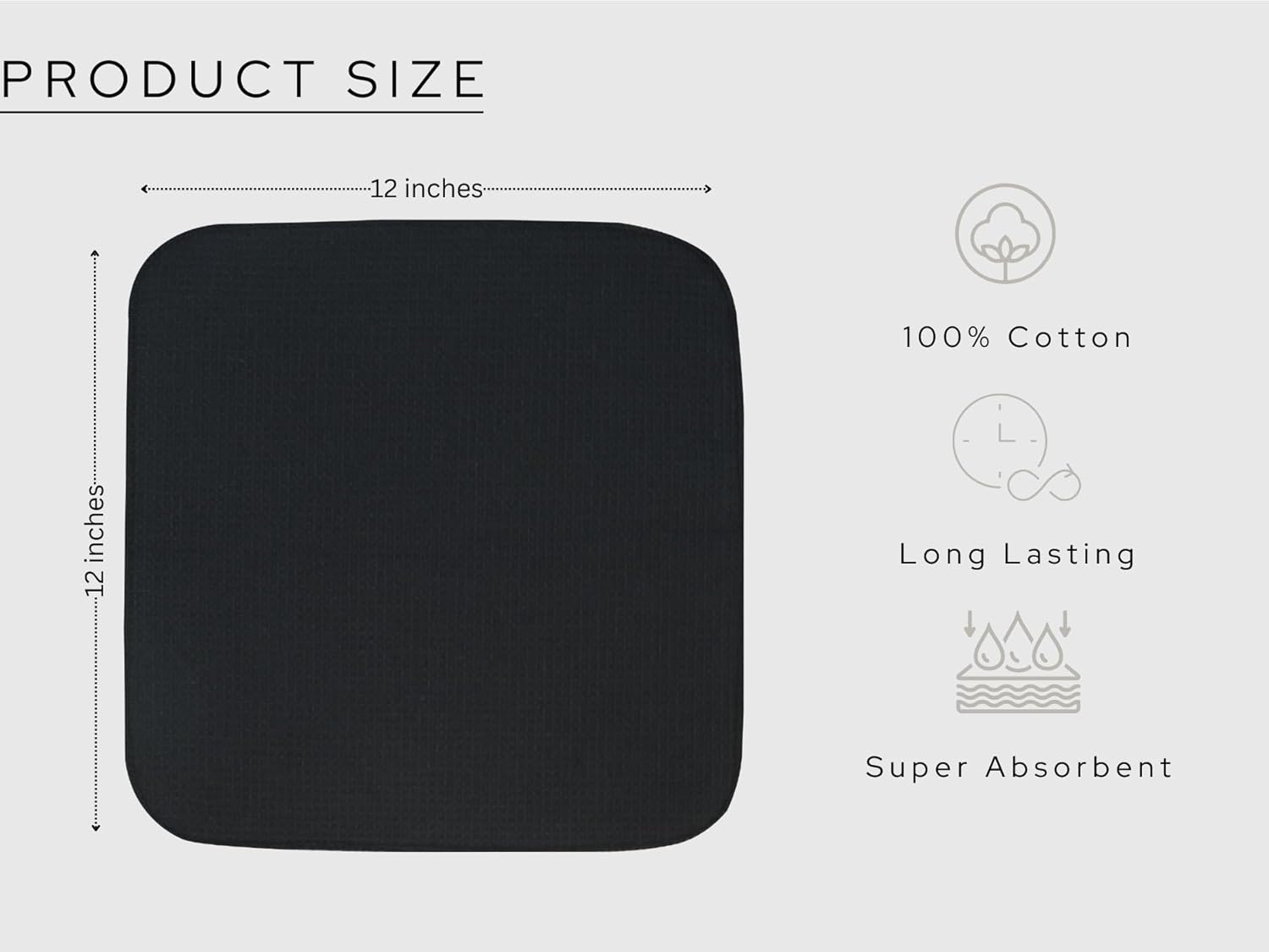 PurpleEssences Dish Cloths and Dish Rags - 8 Pack Waffle Weave Solid Kitchen Dish Wash Cloths, 100% Cotton, 12 x 12 Inches, Ultra Soft Absorbent Quick Drying - Spring Summer - Black