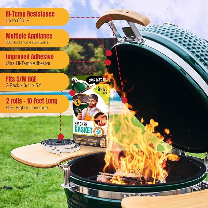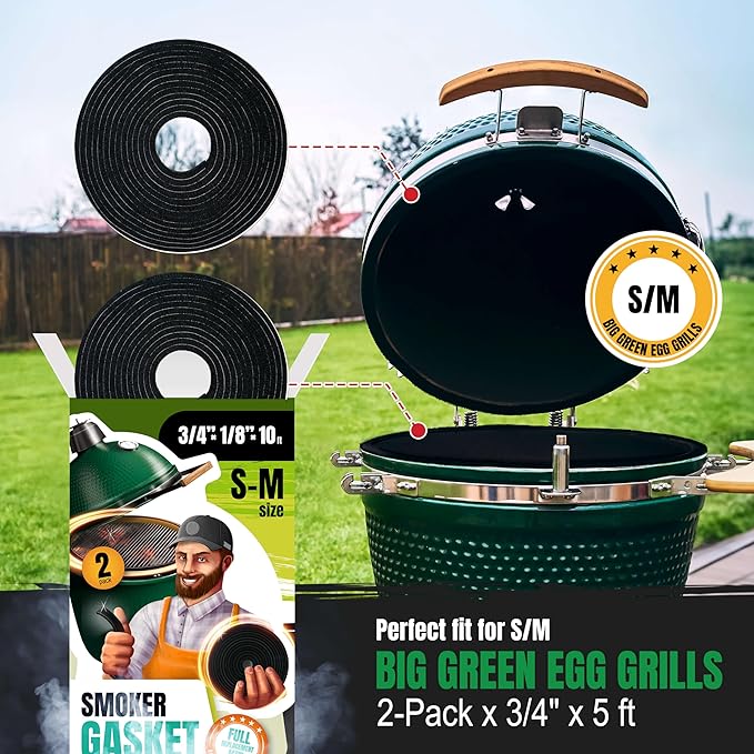- Perfect Fit & Performance: Our gasket is compatible with Big Green Egg small and medium models. It's made from high temp gasket material that withstands up to 660F, ensuring a tight seal. Apply one roll to the grill and one roll to the lid.