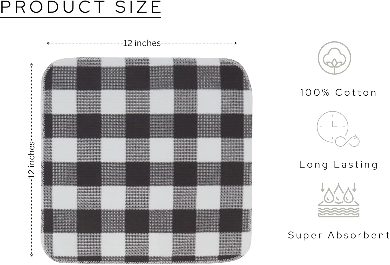 Waffle Weave Plaid Dish Cloths, 100% Cotton - 12 x 12 Inches, Ultra Soft Absorbent Quick Drying Dish Towels Buffalo Check Dish Rags for Kitchen, 8 Pack - Spring Summer - Steel Grey & White