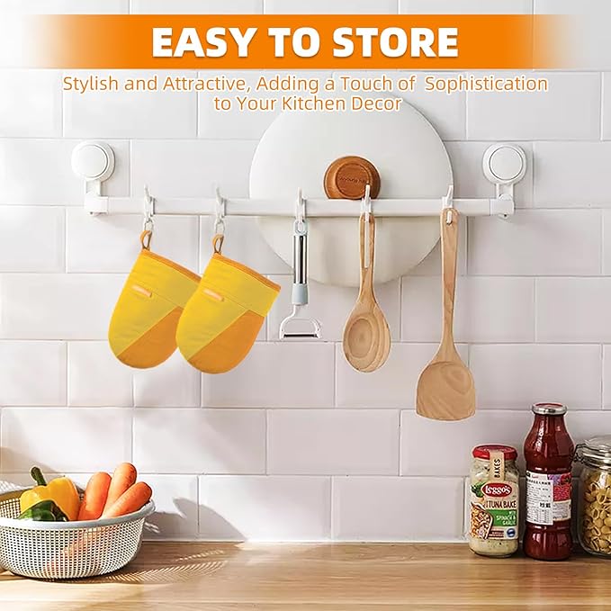 Mini Oven Mitts, Kitchen Oven Gloves Kitchen Mittens 500 Degrees Heat Resistant Baking Gloves, Non-Slip Silicone Surface with Hanging Loops Hot Gloves for Cooking, Baking, BBQ 1 Pair-Yellow