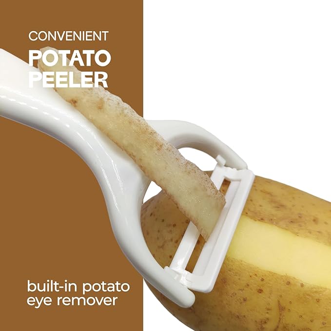 - 🥔【Premium & Durable & Dishwasher Safe】: Sharp and safe ceramic blades, durable and wear-resistant, will not rust, and the handle is made of ABS material, which is very environmentally friendly.Dishwasher safe and easy to store, includes holes for easy hanging,easy to store.