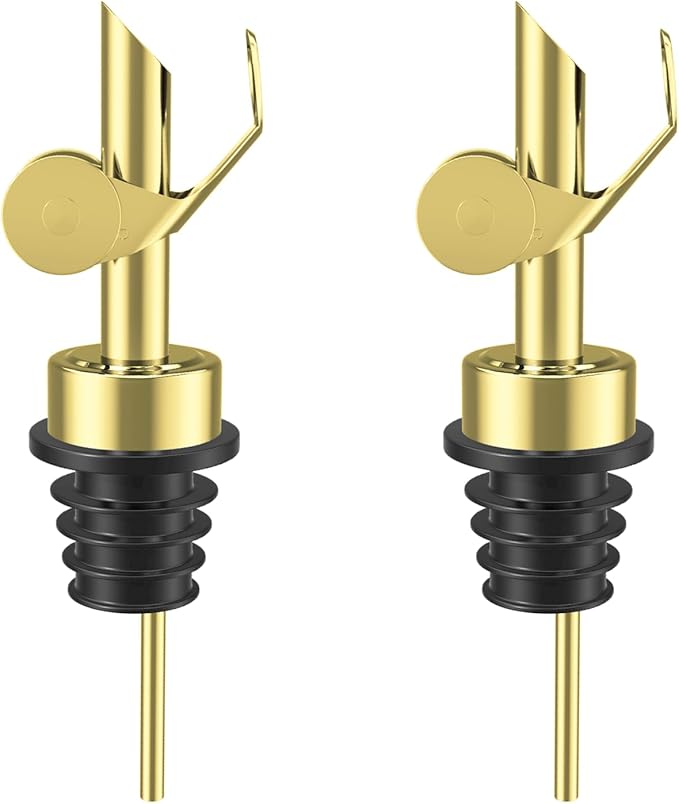 Olive Oil Dispenser Spout, Weighted Liquor Pour Spout, Syrup Dispenser Spout, Stainless Steel Automatic Pour Spouts for Liquor Bottles, Oil Bottles, Vinegar, Syrup and Alcohol 2 Pack Golden