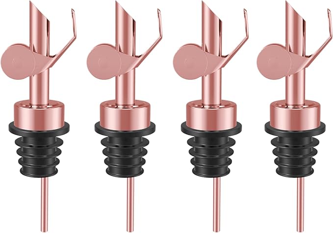 Olive Oil Dispenser, Weighted Liquor Pour Spout, Stainless Steel Automatic Spouts for Liquor Bottles, Oil Bottles, Vinegar, Syrup and Alcohol - 4 Pack Rose Golden