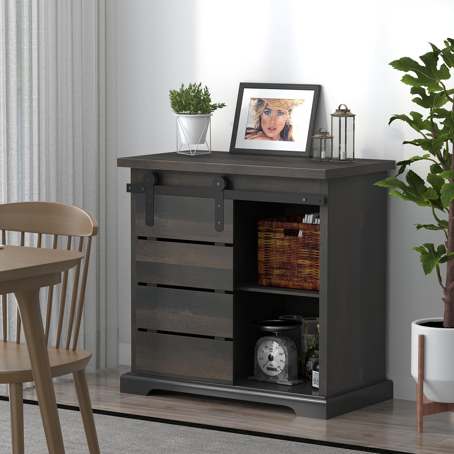 NSdirect Sideboard Coffee Bar Cabinet,Modern Farmhouse Buffet Station Sliding Barn Door Storage Credenza Console with Slat and Shelf Entryway Storage Cabinet Kitchen Dining Living Room, Brown