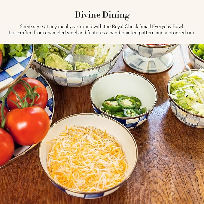 MACKENZIE-CHILDS Enamel Everyday Bowl, Serving Bowl for Entertaining, Small, Pink-and-White Rosy Check, Set of 1