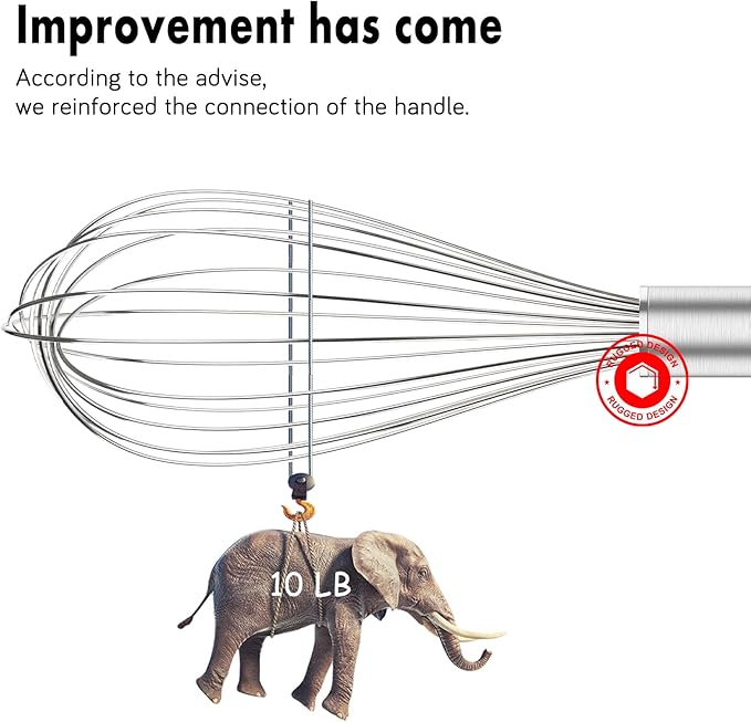 - EFFORTLESS CLEANUP: Our metal whisk is dishwasher-safe with a design that tightly seals the wires to the handle, preventing water buildup. Engineered for performance and practicality, it ensures hassle-free cleaning