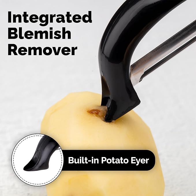 - PEELING MADE EASY: Smooth and effortless peeling starts with our vegetable peeler! With a swivel design, this peeler is made with dual sharp blades that glide through the surface of fruits and vegetables. The built-in blemish remover further adds to your convenience.